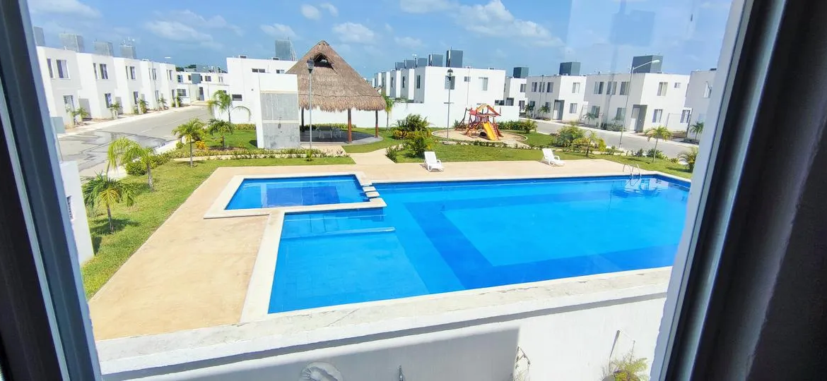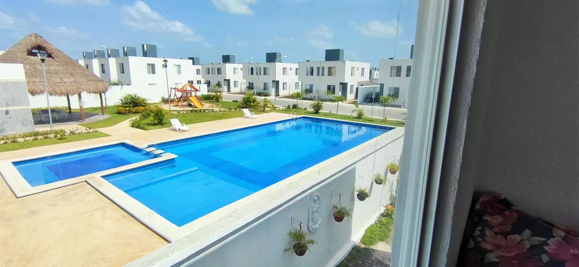 Una de las ventajas más destacadas de esta propiedad es su ubicación al lado de la alberca del fraccionamiento, permitiendo disfrutar de esta amenidad con gran conveniencia.