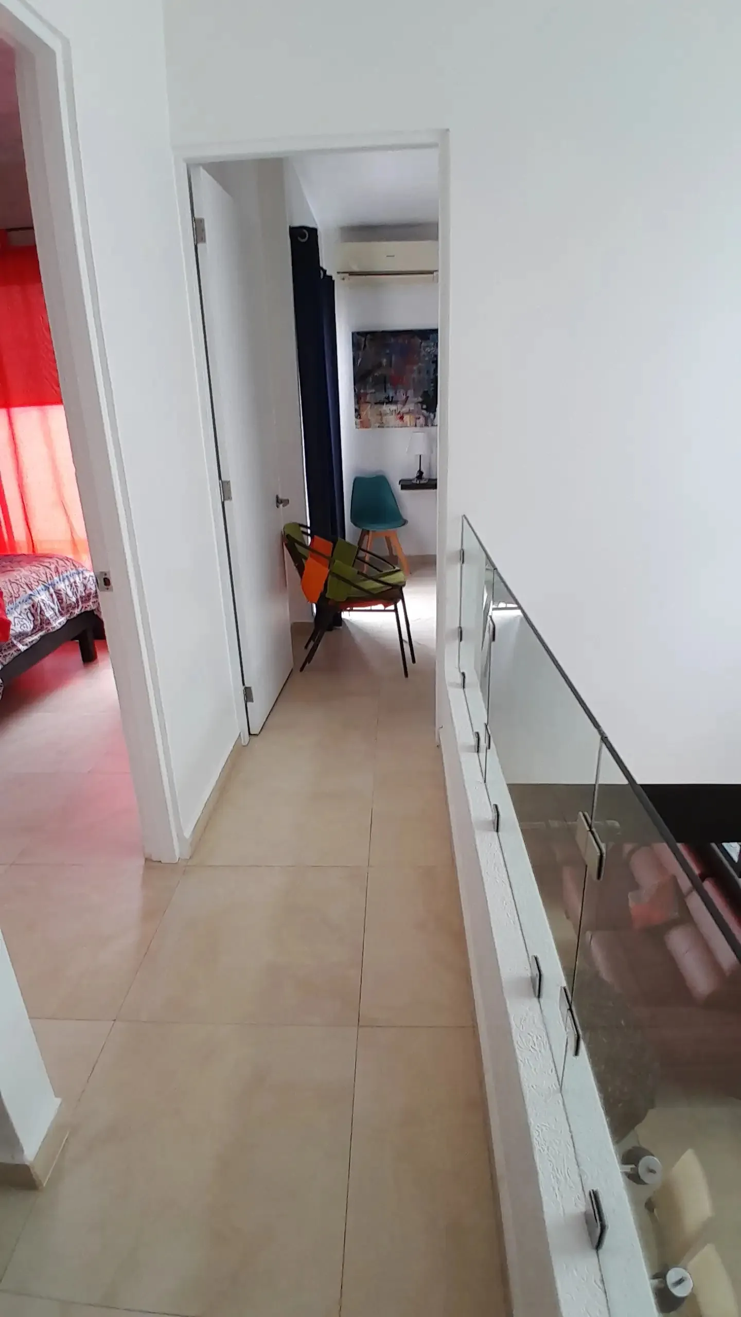 Dos dormitorios adicionales con acceso a terrazas y un baño completo compartido.