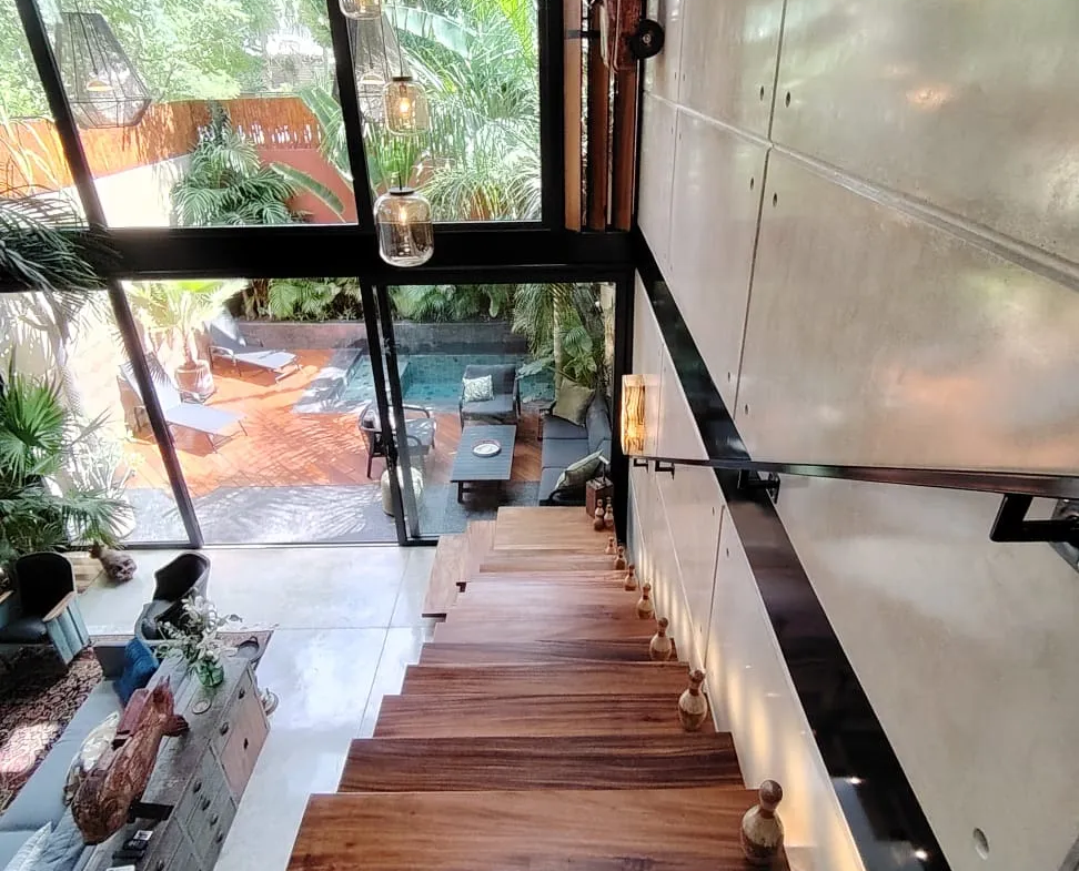 Casa Esencia presenta un impresionante diseño único que redefine el concepto de vivienda en el Barrio de Santiago, destacando por: