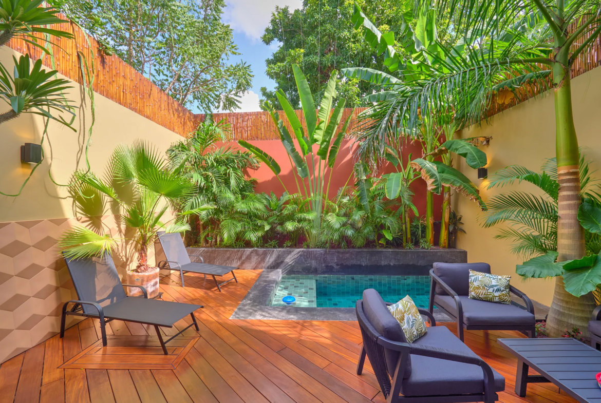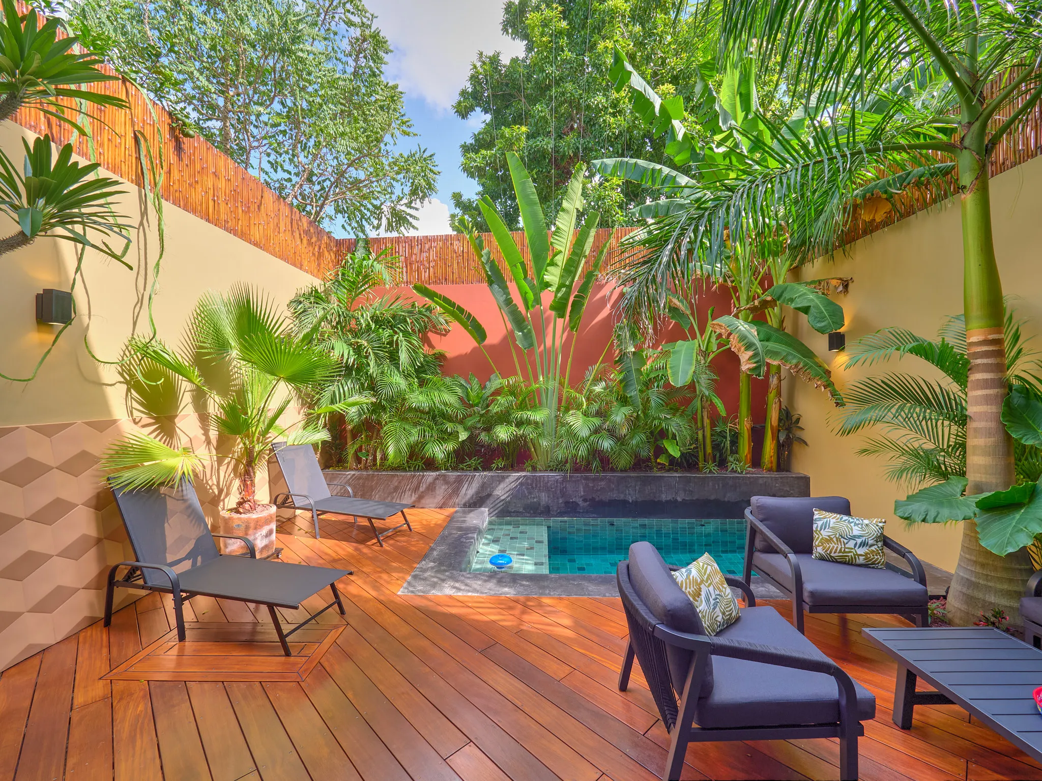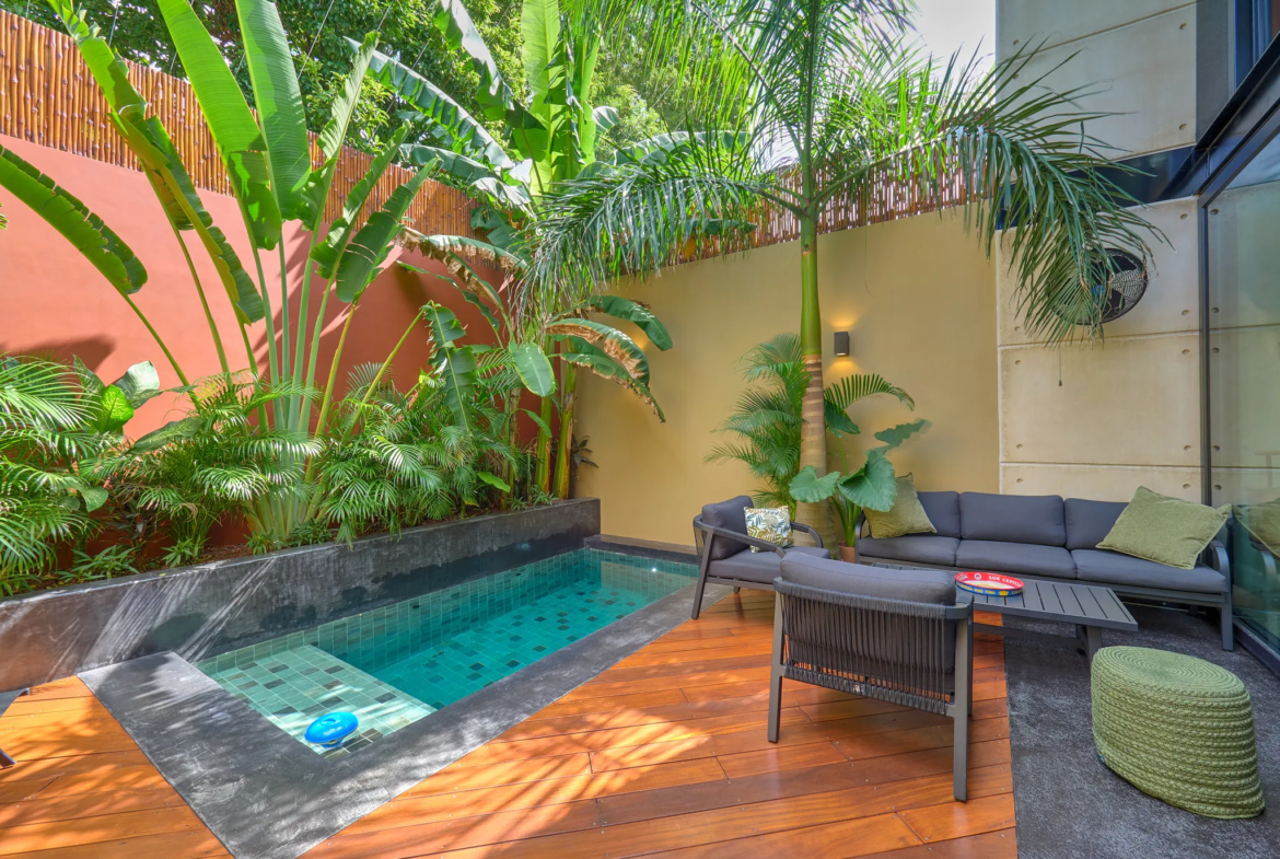 Patio hermoso que complementa la alberca